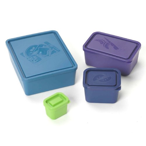 Bento Buddies 2.0 Set of 4 Lidded Containers, Berry. Laptop Lunch Bento Buddies are a set of four lidded containers that can be used on their own directly inside a lunchbox or inside Bento 2.0 for additional configurations. The Bento Buddies include one extra-large, one large, one medium, and one small dip lidded containers. They contain NO PVC, phthalates, bisphenol A (BPA), or lead. Available in lime, pink, red, purple party, and "berry blue." This selection comes with containers in lime, teal, purple, and blue. (Made in the USA)